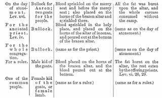 The sin offering was to make an atonement for sin—to avert judgment from the offerer. This general characteristic is always the same, though the details differ, as will be seen in the following table: