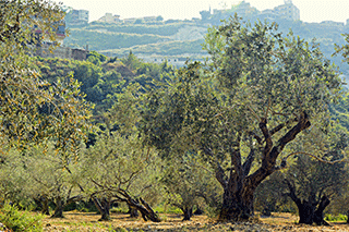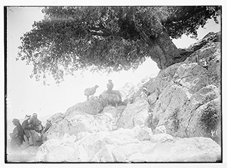 Silhouette of shepherd and sheep under a giant oak at Ain Samieh.
